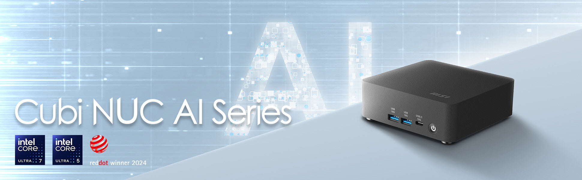 The Cubi NUC AI 1UM is a mini pc equipped with Intel® AI Boost NPU and Intel® CoreTM Ultra processor, and it won the Red Dot Design Award in 2024. With quadruple monitor support, dual 2.5G LAN network capabilities, sustainable material and packing design, the Cubi NUC AI is compact, versatile, yet capable mini desktop PC for home or the office with AI features.