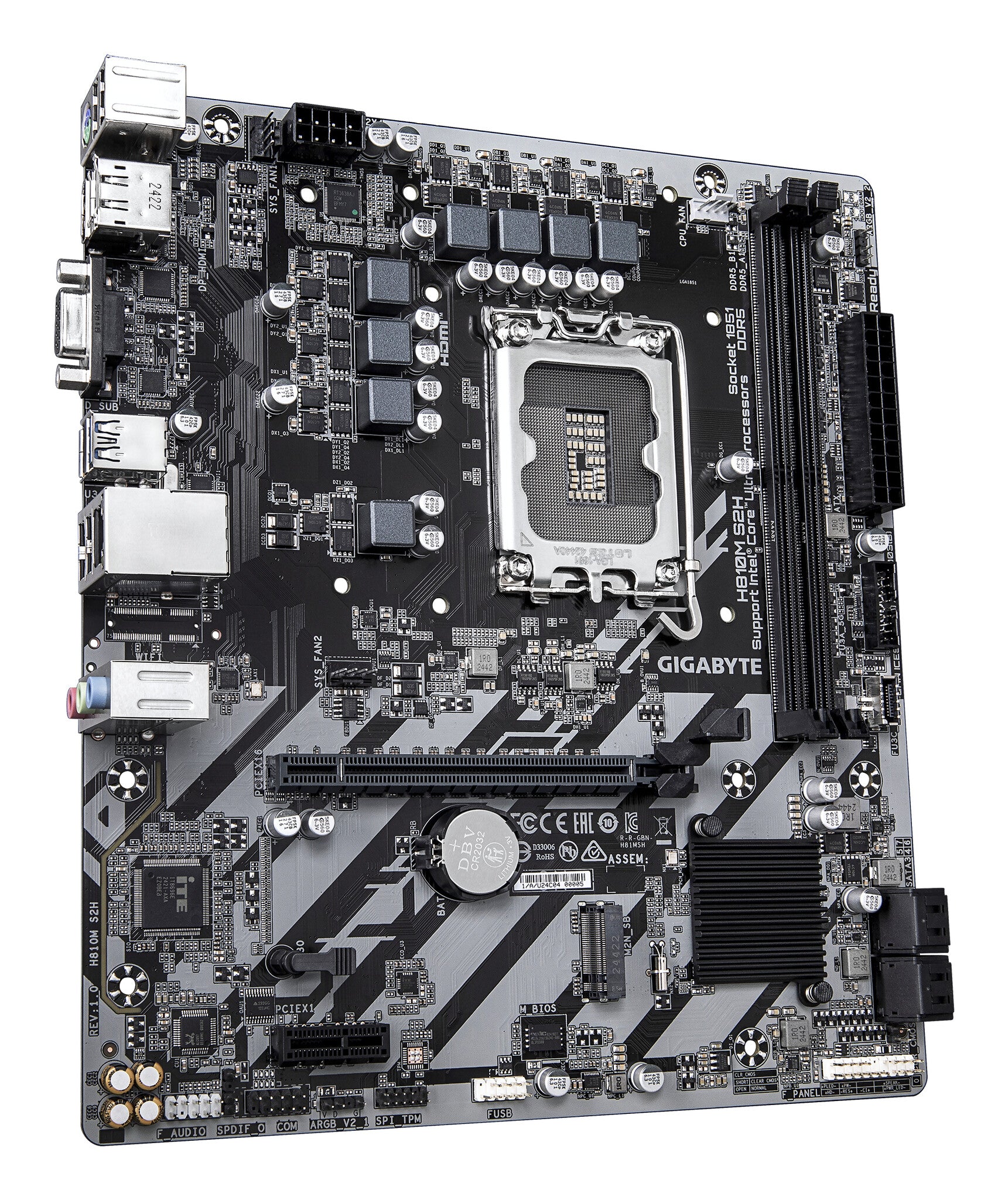 GIGABYTE H810M S2H Motherboard - Intel Core Ultra (Series 2) CPUs, 4+1+2 Phases VRM, up to 6400MHz DDR5, 1xPCIe 4.0 M.2, 1GbE LAN, USB 3.2 Gen 1