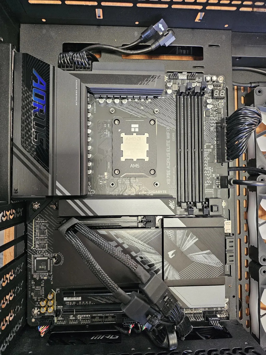 GIGABYTE X870E AORUS ELITE WIFI7 Motherboard - Supports AMD Ryzen 9000 CPUs, 16+2+2 Phases Digital VRM, up to 8000Hz DDR5 (OC), 3xPCIe 5.0 + 1xPCIe 4.0, Wi-Fi 7, 2.5GbE LAN, USB 4 is backordered and will ship as soon as it is back in stock.