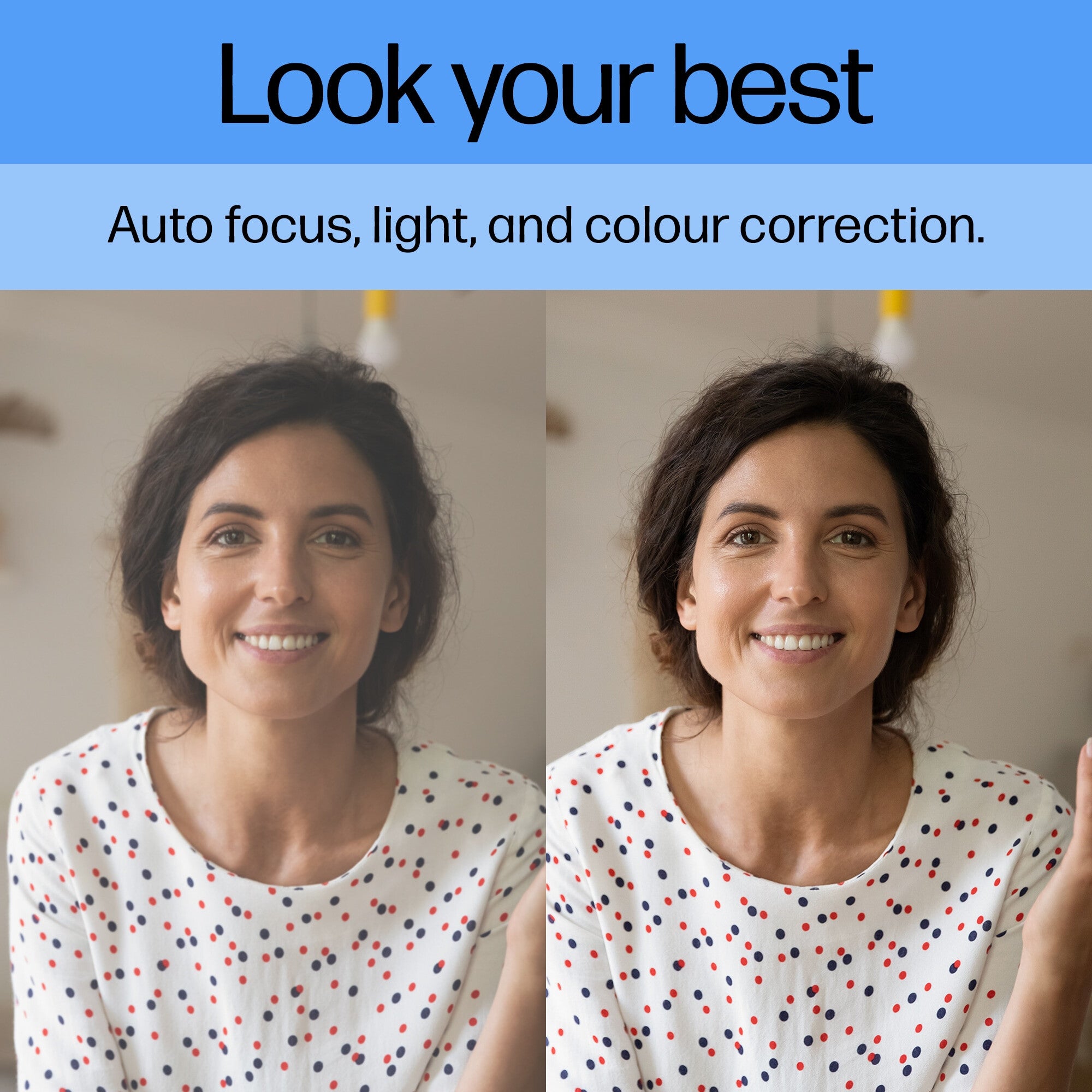 Learn, teach, and collaborate like you’re in person, no matter where you are. Present the real you and focus on what matters, not how you look, thanks to automatic focus, lighting, and color correction. This portable plug and play webcam includes dual mics that reduce background noise to keep you in focus and sounding great from anywhere.