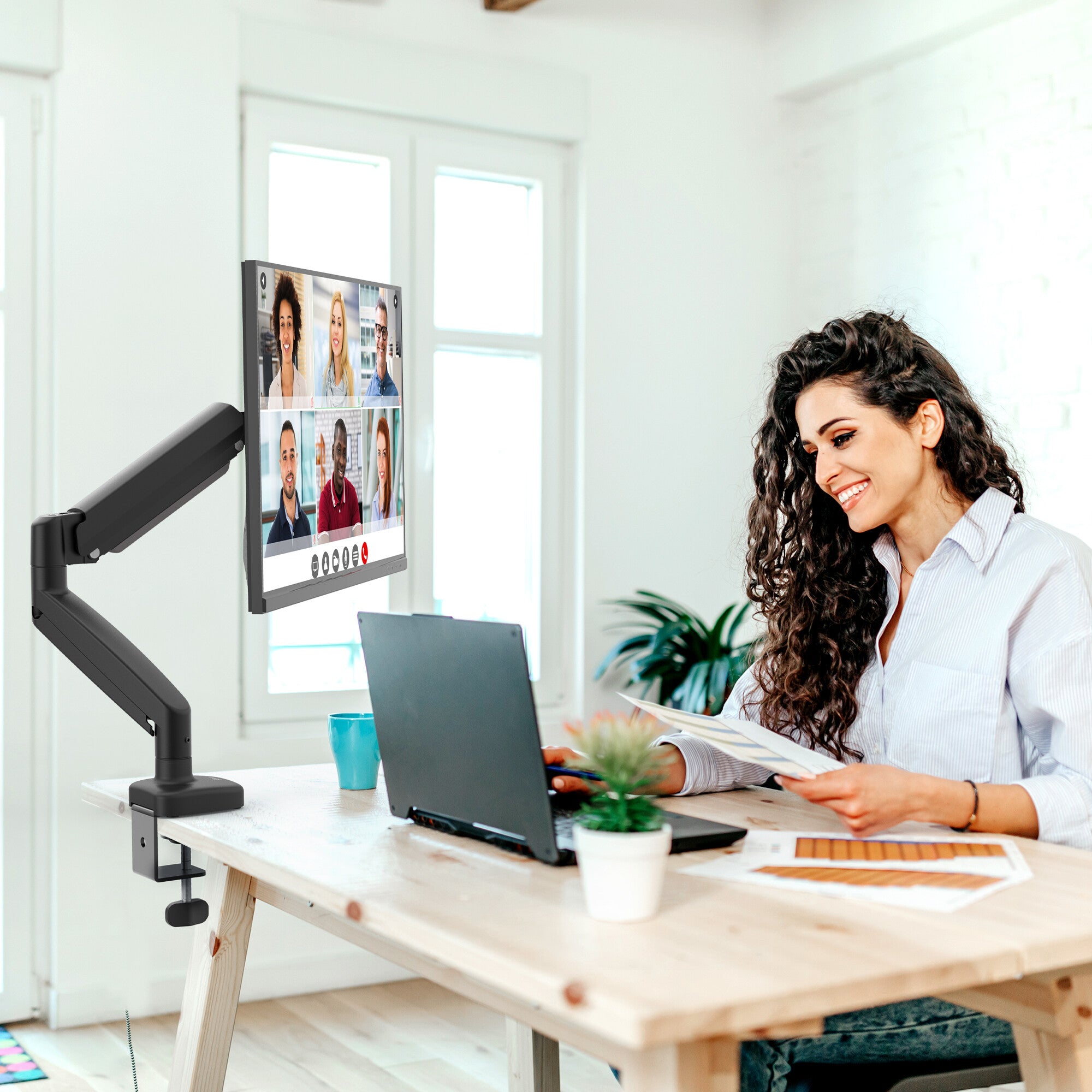 The JTSA101 is a gas spring monitor mount. The arm can hold max a 32” screen weighing up to 8kg/17.6 lbs. Easily adjust your screen to any height. The gas spring allows the screen to swivel 180°, tilt -45° to +90°and rotate 360°. Conveniently set your monitor at an optimal angle. This monitor mount gives you the ability to create a more efficient workspace, whether you need extra space or a standing desk setup.