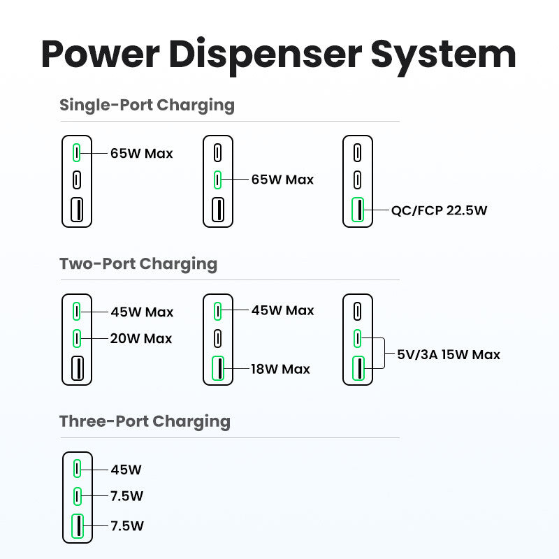 *USB-C2 Output:5.0V⎓3.0A/9.0V⎓3.0A/12.0V⎓2.5A/15.0V⎓2.0A/20.0V⎓1.5A 30W Max *USB-A output:5.0V⎓3.0A/9.0V⎓2.0A/12.0V ⎓1.5A/10.0V ⎓2.25A22.5W Max*Total Output:65W Max