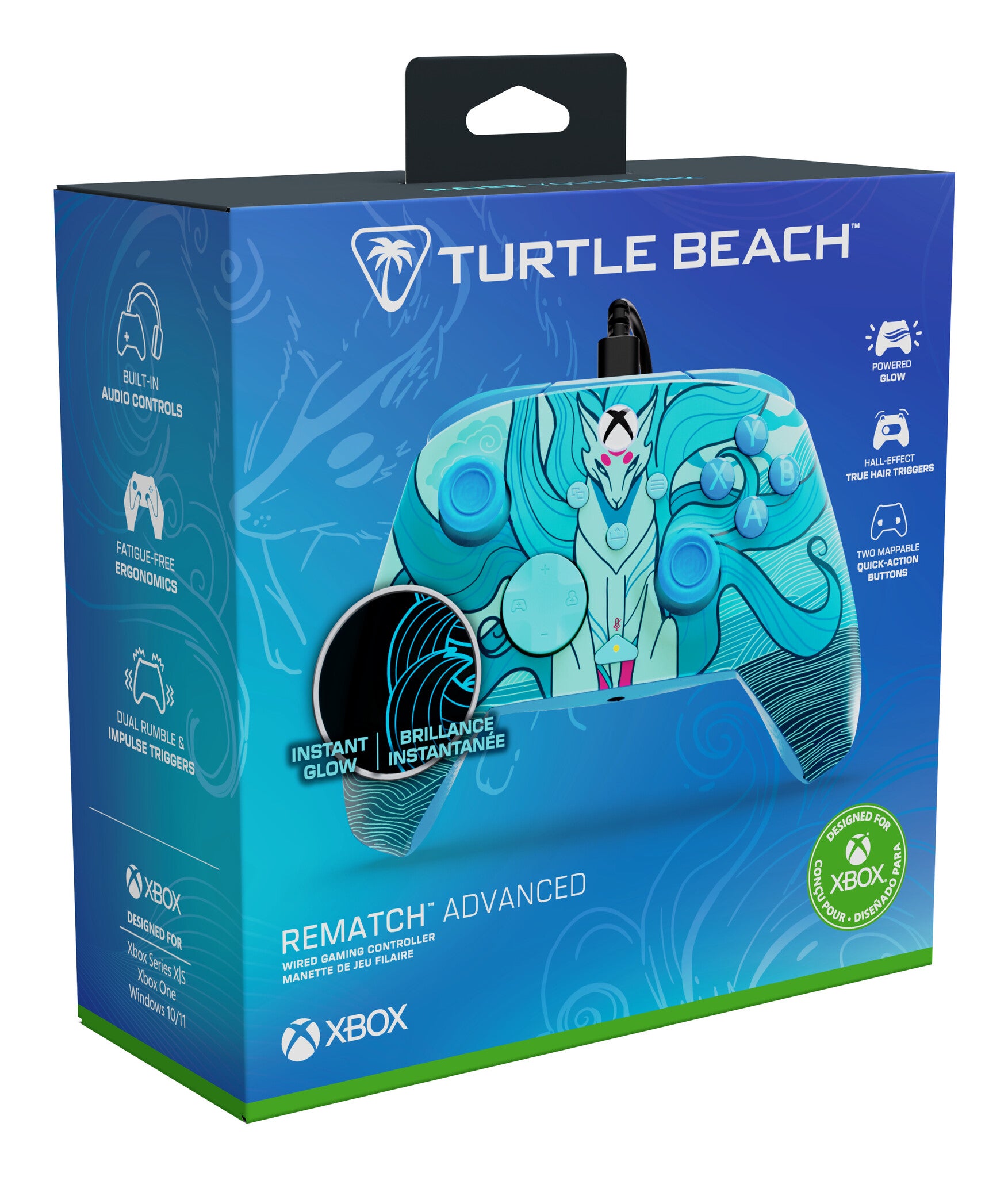 Turtle Beach Rematch Advanced Blue Kitsune Wired Gaming Controller for Xbox and PC – Powered Glow, Remappable Buttons, Hall-Effect Hair Triggers, 8ft Cable, Officially Licensed by Xbox