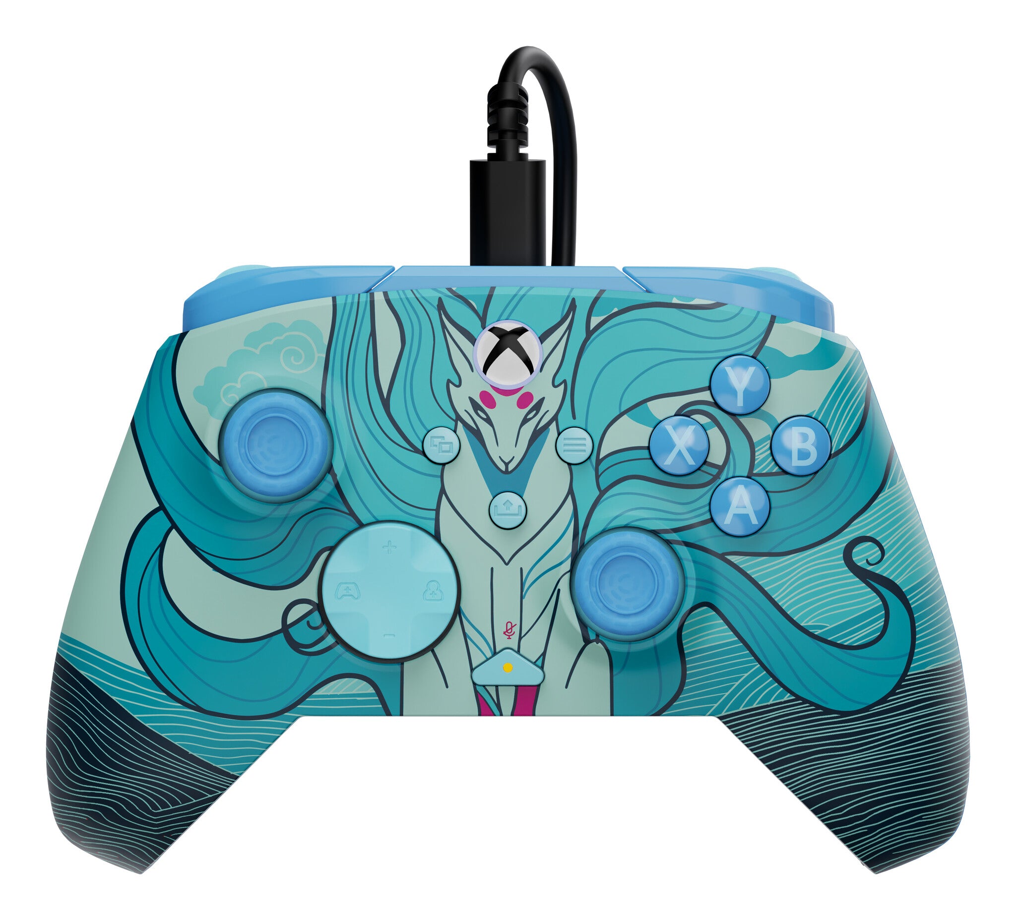 Ready for a rematch? Take your gaming setup to the next level with the Rematch Advanced Wired Gaming Controller for Xbox and PC. The Blue Kitsune controller is inspired by the legendary fox of Japanese Folklore, known for its intelligence, speed, and shape-shifting power. This design features stunning fox imagery in soft blue tones, creating a sense of movement and energy that flows across the surface. It brings a calm yet powerful aesthetic to your setup and turns your controller into a striking expression of style and character.