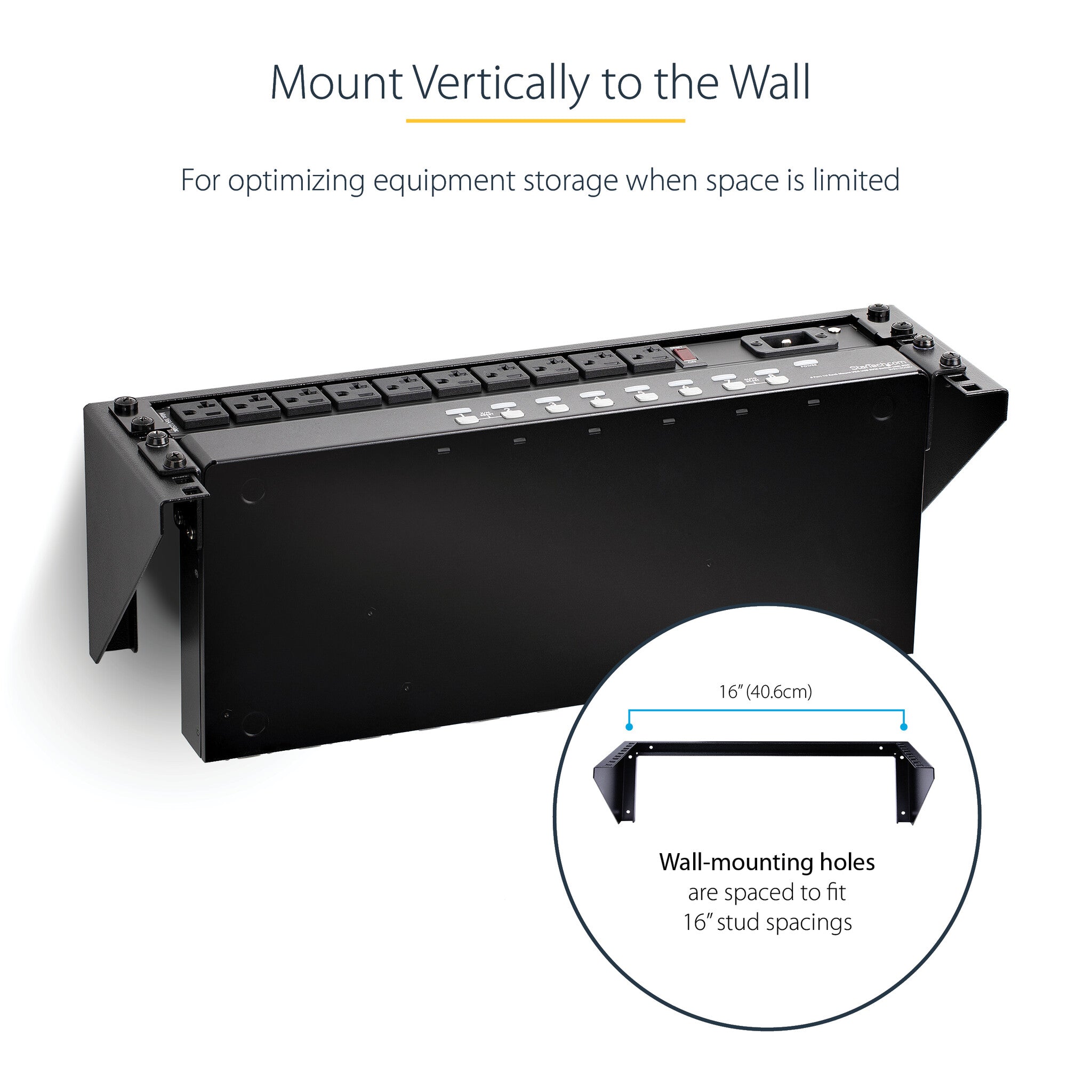 StarTech.com 3U 19” Wall Mount Vertical Rack Bracket, Wall Mount Patch Panel Bracket for Data/AV/IT/Computer Equipment, 3U Rack for Cabinet or Server Room, Supports 150lb (68kg) Capacity