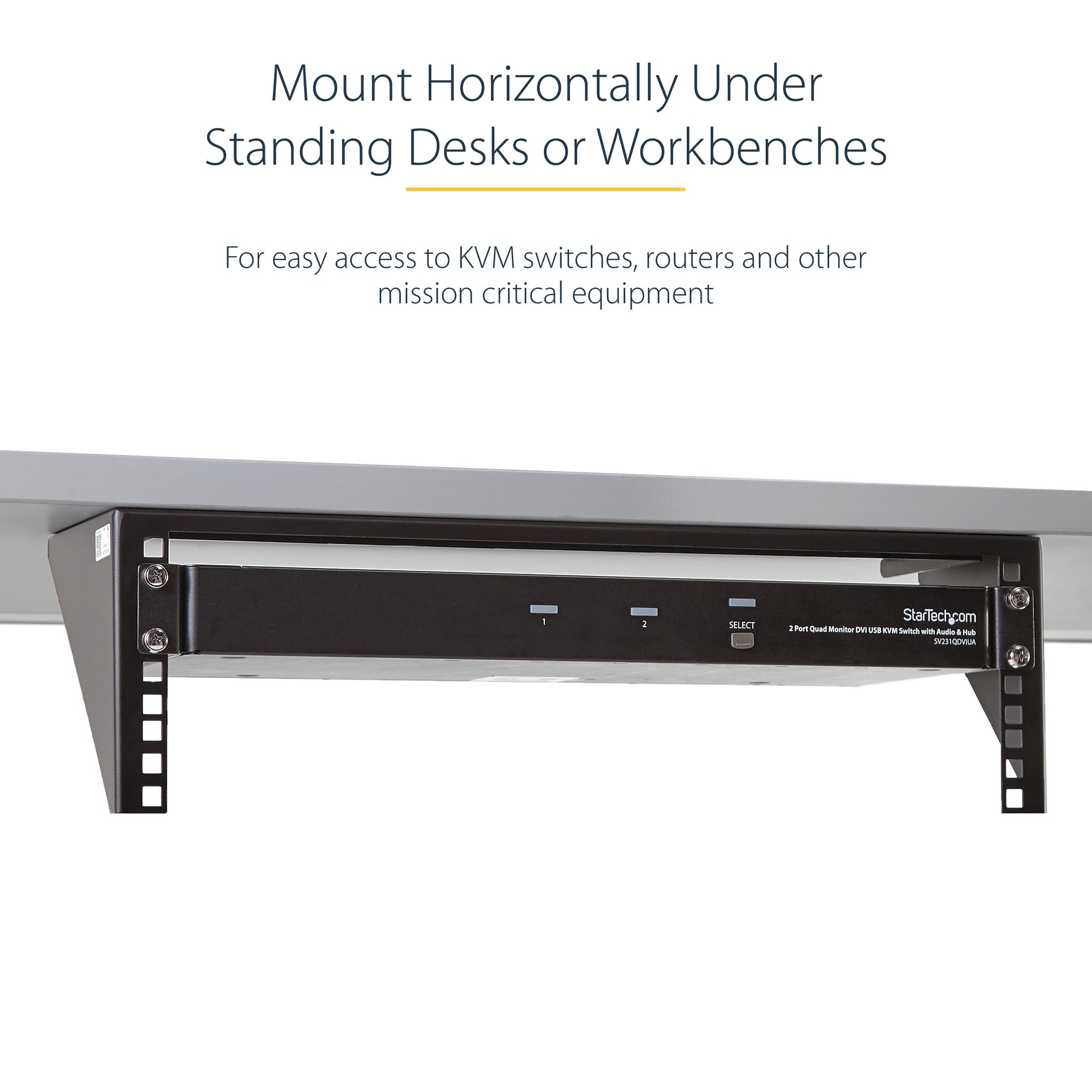 This 3U 19 in server room rack enables vertical mounting of rack-mounted equipment of any depth. Mount the bracket to a wood stud wall and position equipment vertically, maximizing space utilization and optimizing layout design. The open-frame design allows for unrestricted airflow to the mounted equipment, improving cooling.