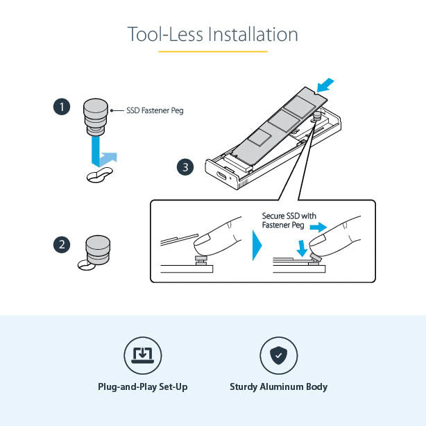 Works with Both PCIe and SATA Based M.2 Drives | Supports 2230/2242/2260/2280 Drive Heights | Tool-less Drive Installation | USB-C and USB-A Host Cables Included