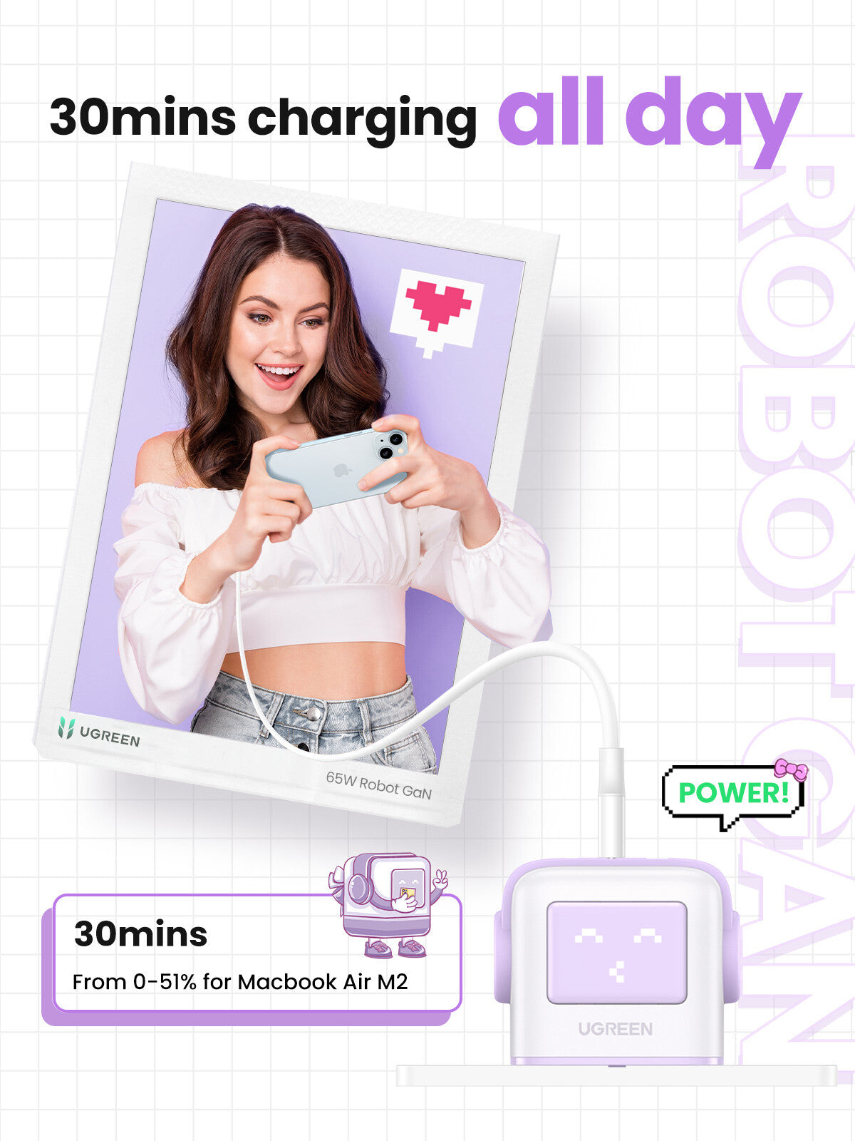 Super-Fast Charging: Powers a MacBook Air M2 to 51% in just 30 minutes.
