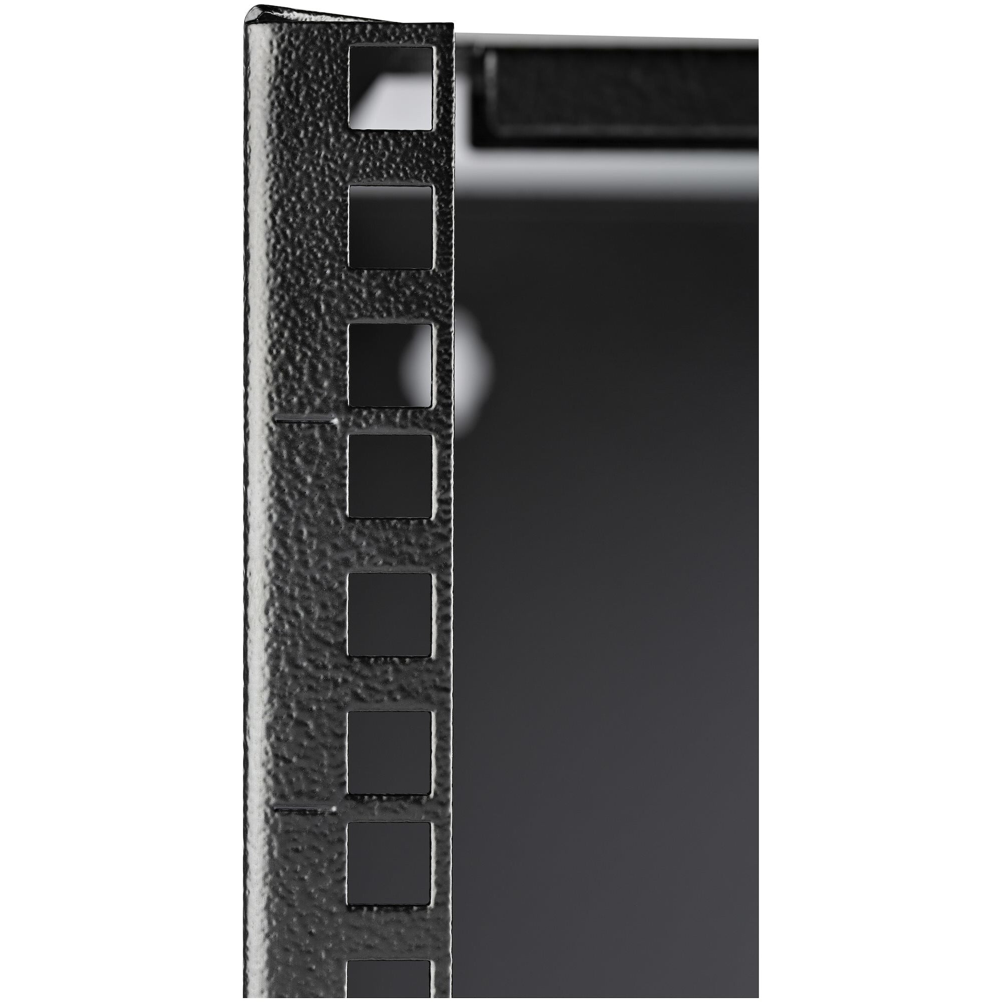 The wall rack is constructed of solid steel to ensure a sturdy and safe mounting solution for your mission-critical equipment. Also, because the wall-mount rack's mounting holes are positioned 16 in. apart, it exactly matches standard drywall construction framework to ensure simple and secure wall-stud anchoring. The rack also features a rear access panel that can be used to easily run cabling into the rack.